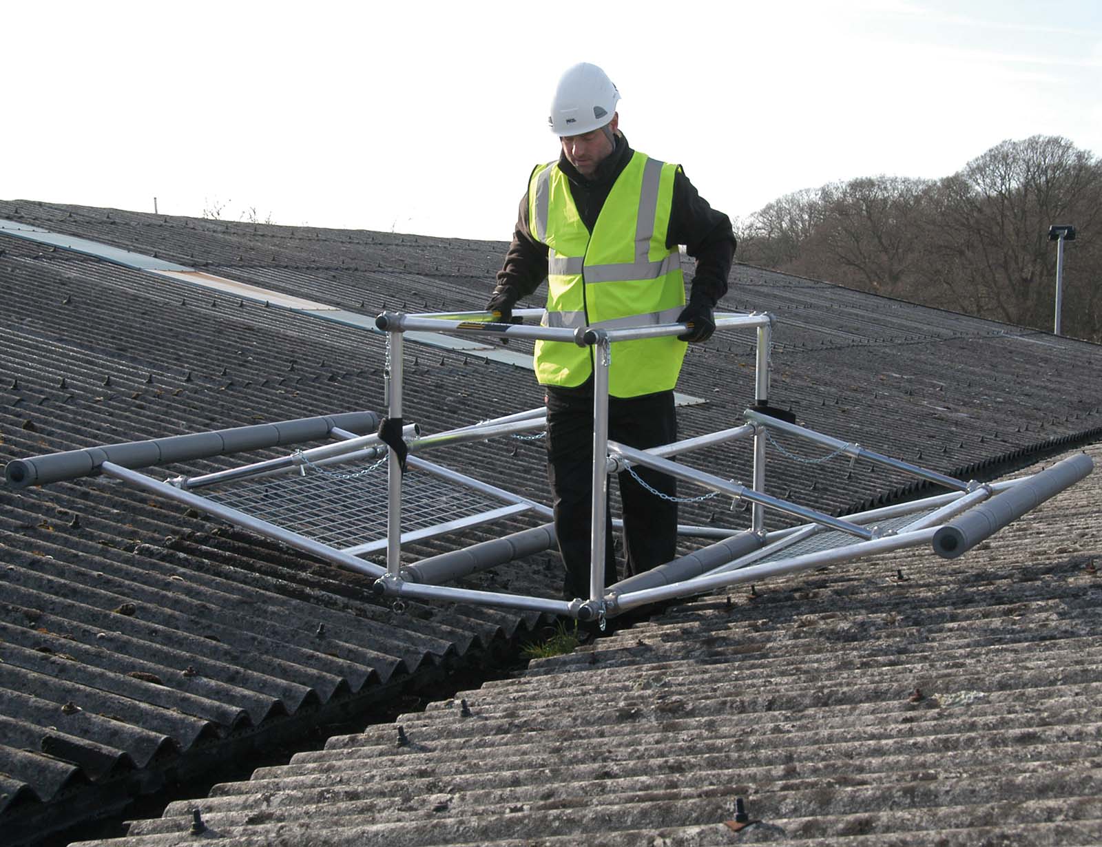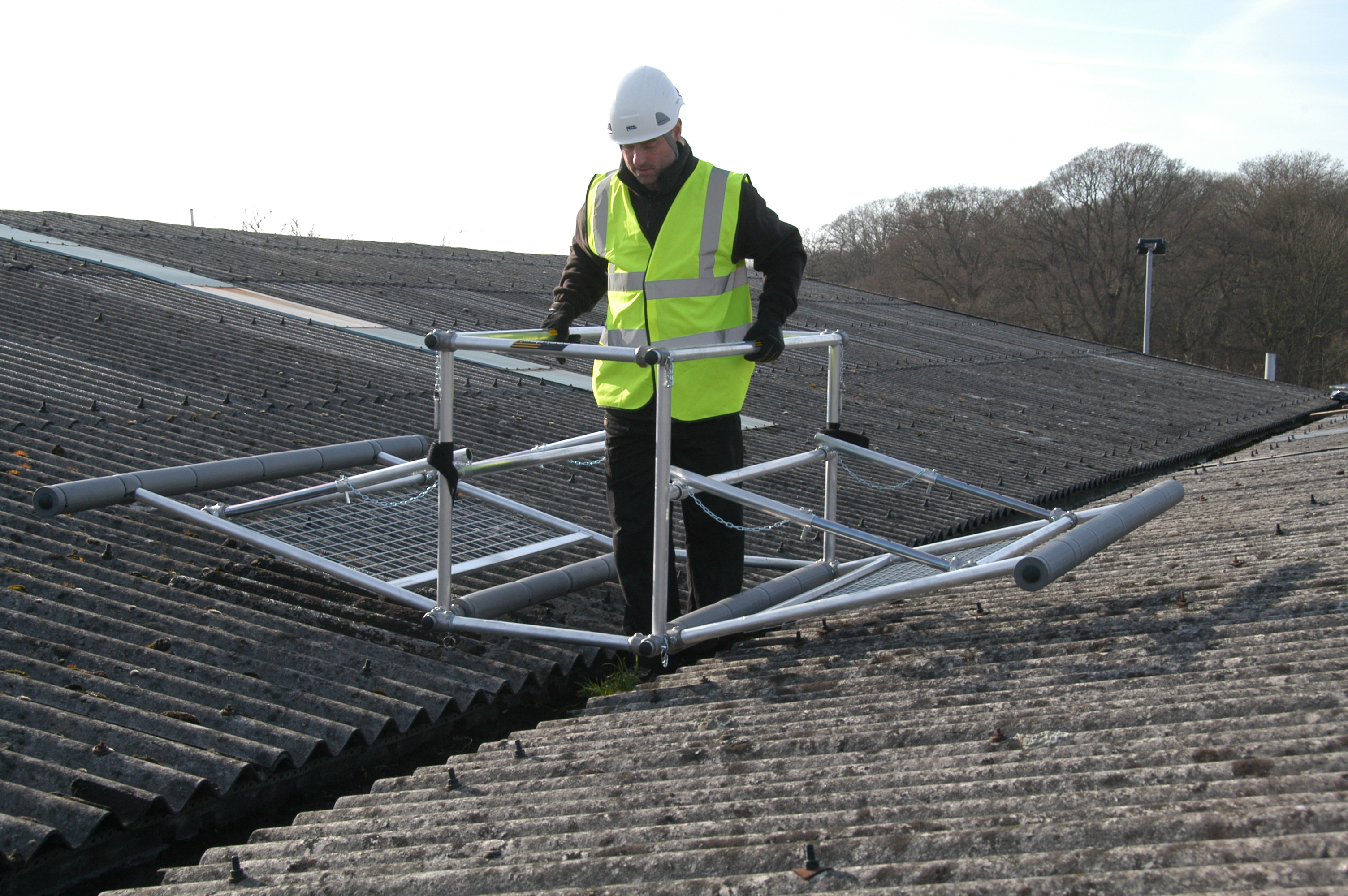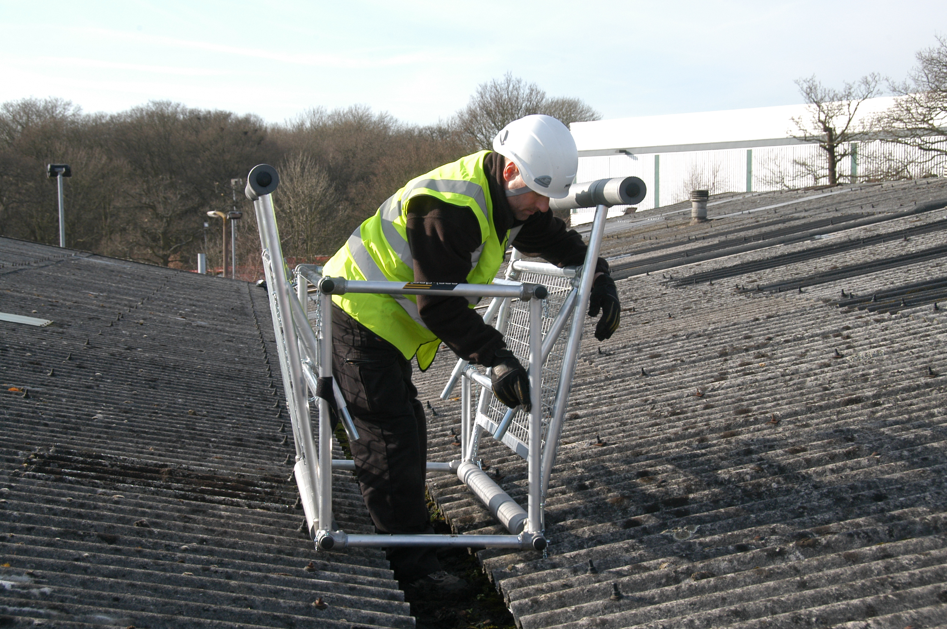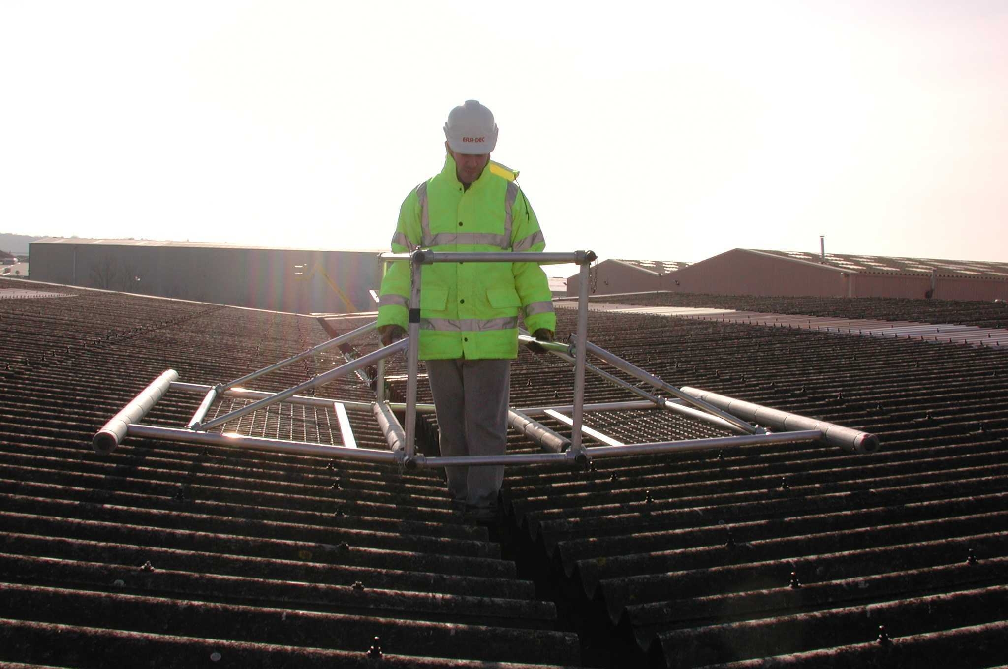 Permet à 2 personnes de travailler en sécurité à la maintenance de chéneaux et toits fragiles.